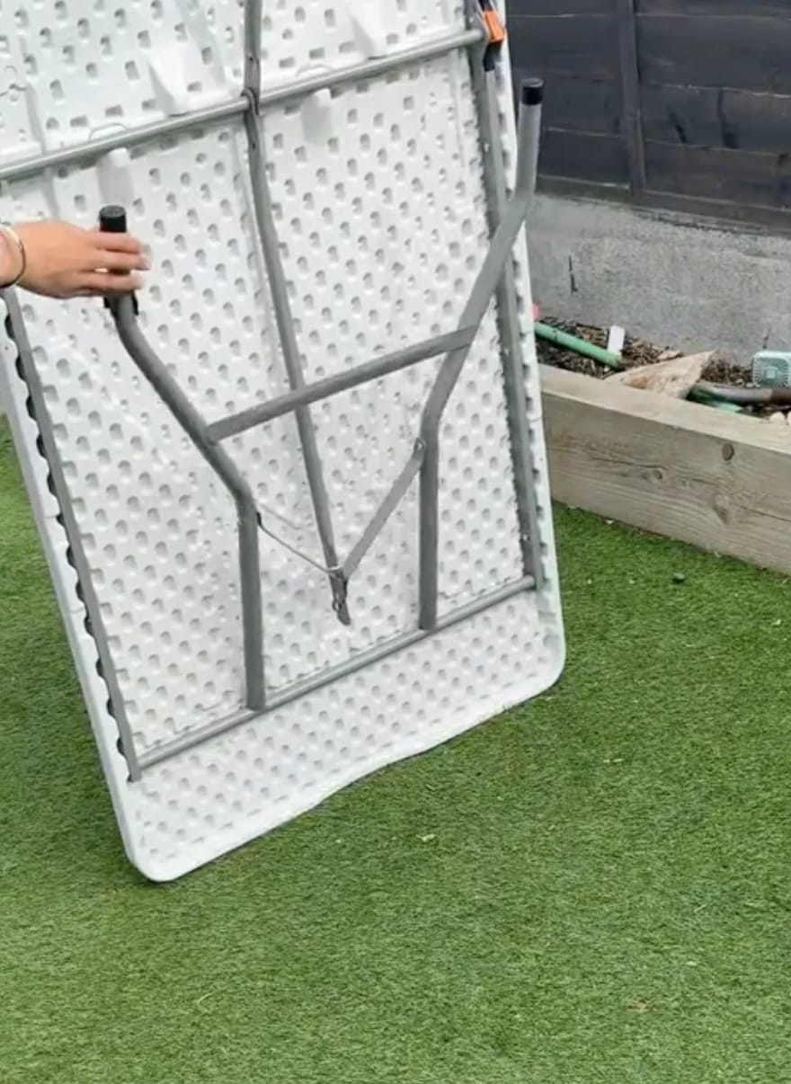 • Excellent product that comfortably and stably accommodated a meal for 6 people. I recommend it as a second dining table for friends, both outdoors and indoors. SPACE SAVING!